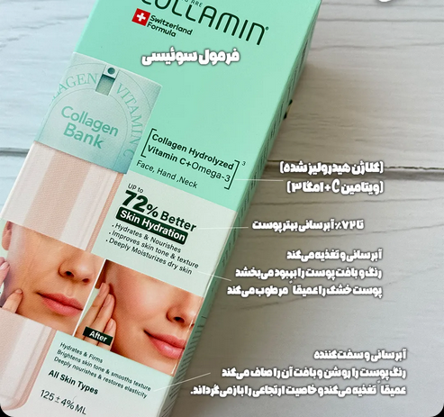 کرم مرطوب کننده کلاژن بانک کلامین محصولی تخصصی از شرکت سیلانه سبز است که به عنوان یکی از برندهای معتبر در صنعت محصولات آرایشی-بهداشتی ایران فعالیت میکند. این محصول تحت لیسانس سوئیس و با بهرهگیری از دانش روز دنیا و تکنولوژی پیشرفته فرمولاسیون تولید شده است. از آن سو طراحی در بطری پمپ دار شیشه ای علاوه بر حفظ ترکیبات فعال، استفاده آسان و بهداشتی را فراهم میکند. حجم 125 میلی لیتری کرم کلاژن بانک کلامین نیز انتخابی ایدهآل برای استفاده روزانه و مداوم به شمار میرود.